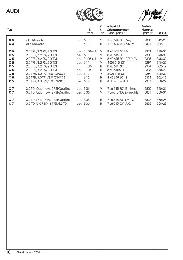 Wir liefern Bremsscheiben in verschiedenen Ausführungsarten.
